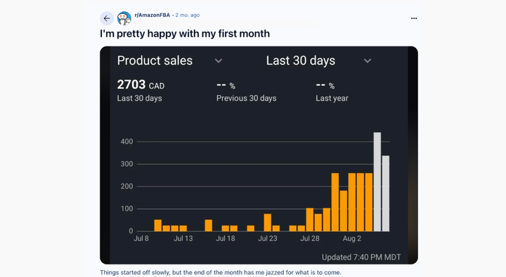 An Amazon seller (OP) confessed: Their first month didn’t start with fireworks, but it sure ended like one.